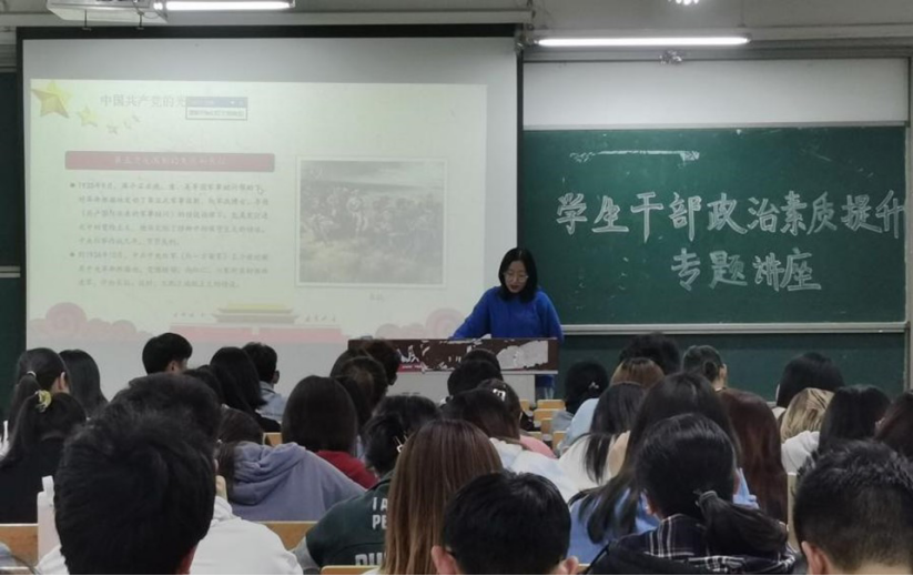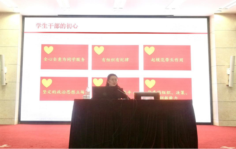 姜东菲以“胸怀天下,立己达人—讲政治,讲责任,讲服务,做新时代栋梁”为题目对此次学生干部培训班作了专题报告。她从诠释“君子不器,立己达人”“成人达己,成己为人”为切入点,与同学们共同学习了4月19日习近平总书记在清华大学考察时发表的重要讲话,勉励同学们牢记习近平总书记对新时代青年的希望,牢记习近平总书记对党员领导干部提出的“对党忠诚、个人干净、敢于担当”的要求,爱国爱党,胸怀天下,把自己的小我融入祖国的大我、人民的大我之中,把党史学习教育的成果转变成“全心全意为同学服务”的工作动力,尽职尽责用心用情为同学们服好务,同时学思践悟锤炼自我,努力成为德智体美劳全面发展的社会主义合格建设者和可靠接班人,努力成为堪当民族复兴重任的国家之栋梁。