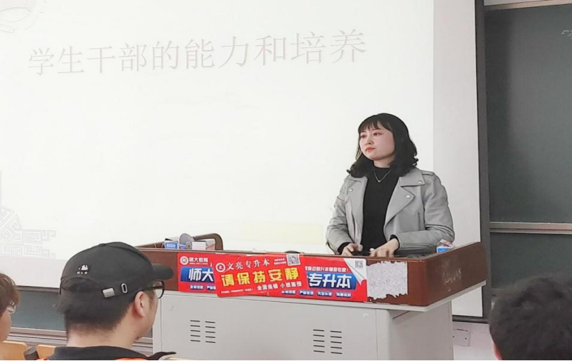 学生干部代表白雪、于颍颖、吴旭以深入浅出、循序渐进的方式进行经验分享,全方位讲解自己的学生干部经历,他们分别从思想品德、学习成绩和工作方法三个方面讲授如何提高自身发展,以自身发展作为切入点,向学生干部分享了自己的工作经验,同时号召学生干部要勇于正视自己的不足、找到自己存在的缺点,及时改正,肩负起一名合格学生干部的责任与担当。