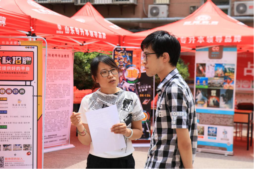 6月9日上午,齐鲁师范学院美术学院毕业生就业双选会在历下校区举办。本次双选会吸引了200余名毕业生同学现场参加。华图教育集团、济南市青少年宫、米多多少儿艺术、诚励书画教育等23家用人单位来校开展宣讲和双选活动,为2021届毕业生提供80多个优质招聘职位。