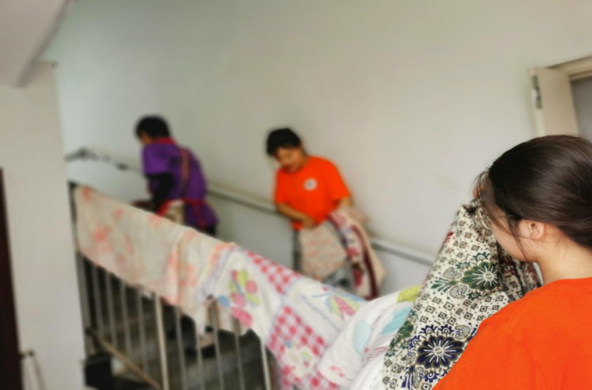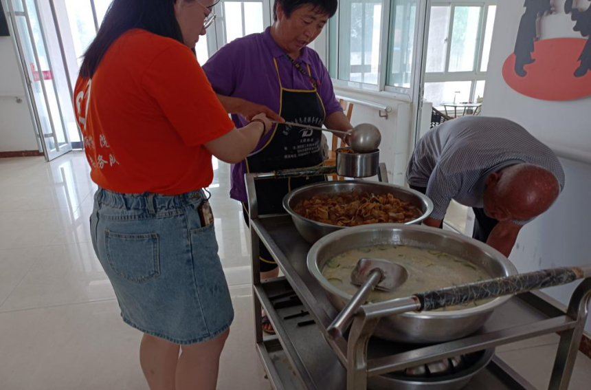 下午,“初心”志愿服务队再次来到敬老院慰问老人,队员们在院内帮助工作人员向老人发放饭菜、帮阿姨采摘蔬菜、晾洗老人的衣服和老人拉拉家常等等,给老人送去心灵上的慰藉,真正做到了“温暖前行”。