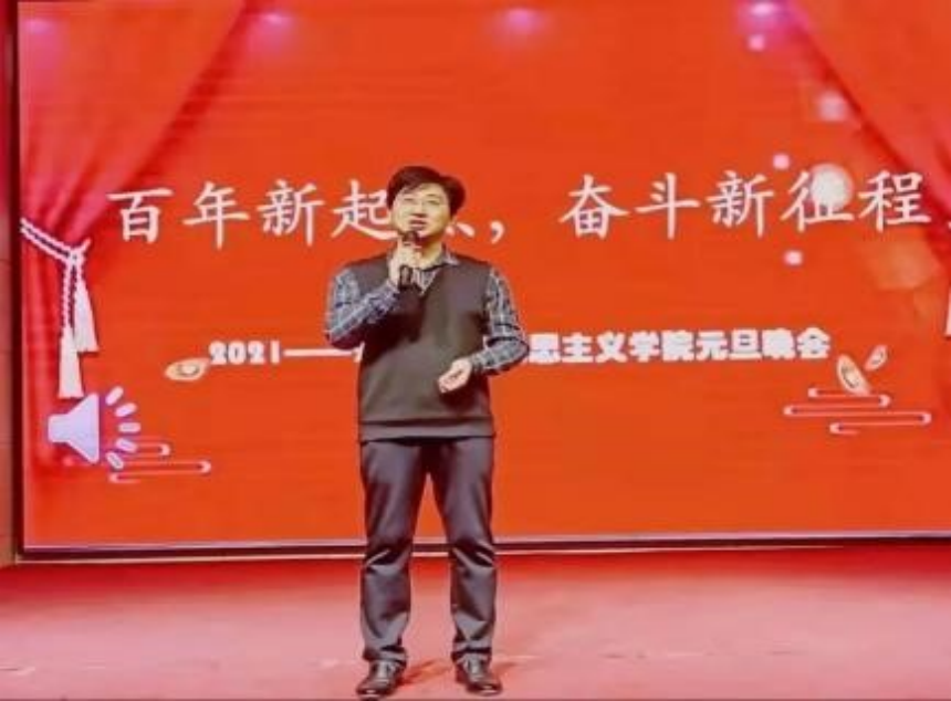 为回首2021年的佳绩,迎接新一年的到来,帮助马克思主义学院学生在实现中华民族伟大复兴的进程中树立正确理想信念,2021年12月30日,马克思主义学院于齐鲁师范学院图书馆报告厅举行了以“百年新起点,开启新征程”为主题的元旦晚会。参加本次晚会的有马克思主义学院党总支书记贾龙老师,院长赵立峰老师,马克思主义学院刘振光教授,办公室主任刘金玲老师,2021级思想政治教育本科一班班主任张纪昌老师,团总支副书记王雅文老师,青年教师代表孙燕丽老师、娄衍群老师、刘英老师、彭珍珍老师、孙良运老师以及马克思主义学院2018级、2020级、2021级思想政治教育本科班全体学生。