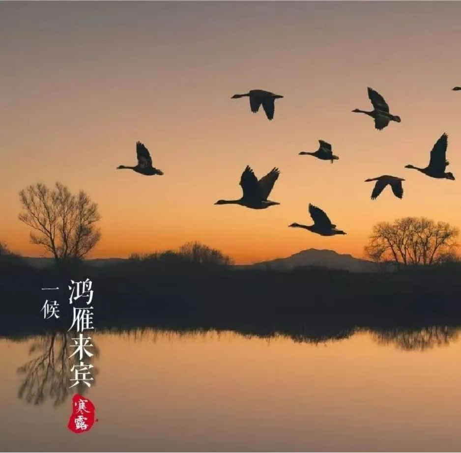 雁以仲秋先至者为主,后至者为宾。此节气中,鸿雁排成“一”字或“人”字形的队列,最后一批也迁往南方。