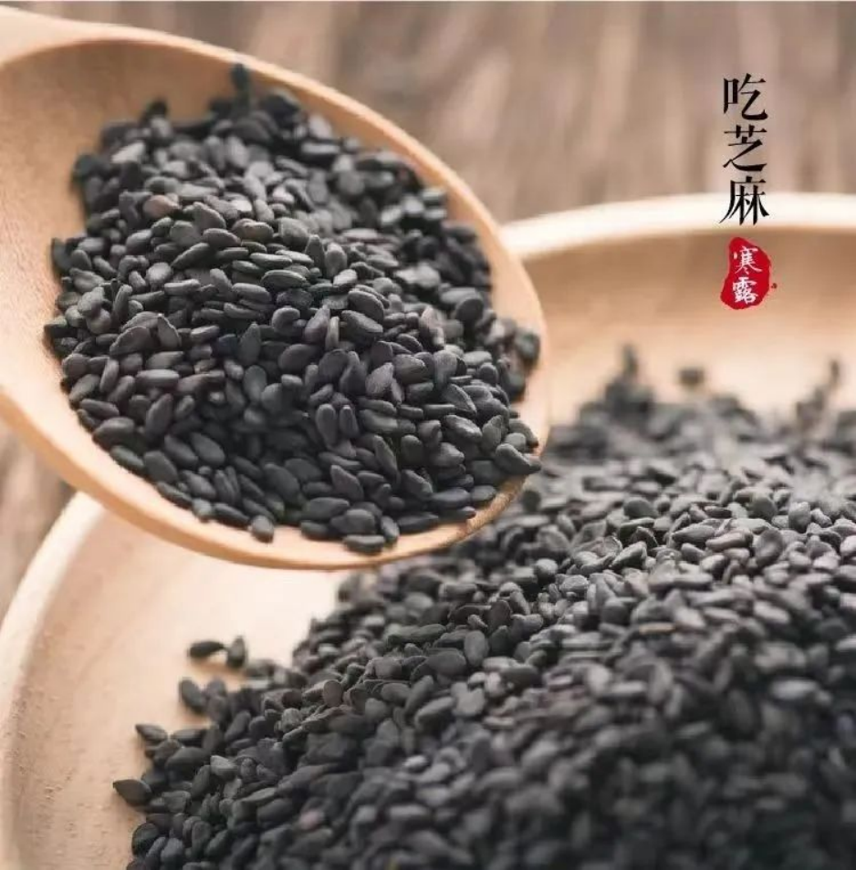 在北京,与芝麻有关的食品都成了寒露前后的热门货,如芝麻酥、芝麻绿豆糕、芝麻烧饼等。芝麻分为白芝麻和黑芝麻。食用以白芝麻为好,药用以黑芝麻为好。谚语说:“嚼把黑芝麻,百岁无白发”,意思是说黑色芝麻养黑发。