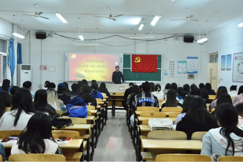 为加强入党积极分子教育培养,10月5日,在章丘校区2号教学楼A102教室,学前教育学院举行2022年第二期入党积极分子培训班开班仪式。学院党委书记郑海斌参加开班仪式并讲话,开班仪式由学院团总支书记郭飞主持。学院党委副书记孙建凯、全体辅导员参加开班式。