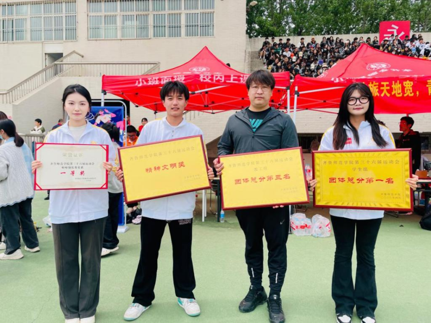 4月27日至28日上午,在齐鲁师范学院第三十六届运动会上,教师教育学院脱颖而出、再创佳绩。学生组团体总分获第一名,学生组啦啦操比赛获一等奖;教工组团体总分获第三名;广大师生热情参与、公平竞赛、文明观赛、齐心协力,荣获精神文明奖。