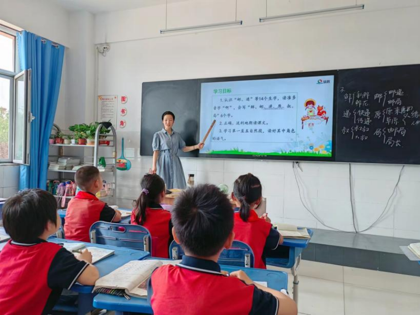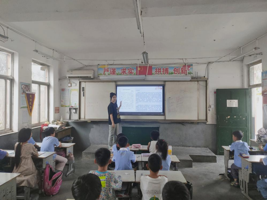 在商河县白桥镇中心小学,参与助学支教的党员结合小学生实际情况认真编写教案,用游戏的方式科普生活常识和科学知识,同时充分发挥专业特长,通过歌曲教唱、乐器演奏等实践课,让小朋友们在耳濡目染中感受并获得美的体验,引导他们发现美、感受美、创造美。