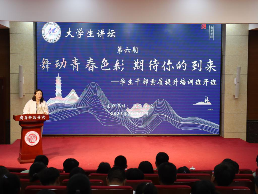 为进一步提升学生骨干的理论素养、工作能力和实践水平,10月16日,数学学院在章丘校区第一学术报告厅举行了“舞动青春色彩,期待你的到来”学生干部素质提升培训班启动会。学院全体辅导员、学生干部及2023级新生参加。