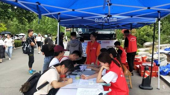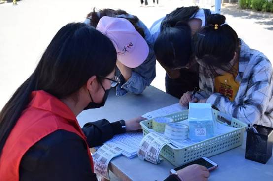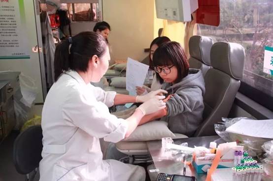 在献血过程中,志愿者们配合工作人员工作,耐心解答同学们的问题,积极地为同学们活跃紧张的氛围。在献血后,志愿者们告诉同学们注意事项并发放义务献血的证书及纪念品。物资虽轻,但是重在精神鼓励。