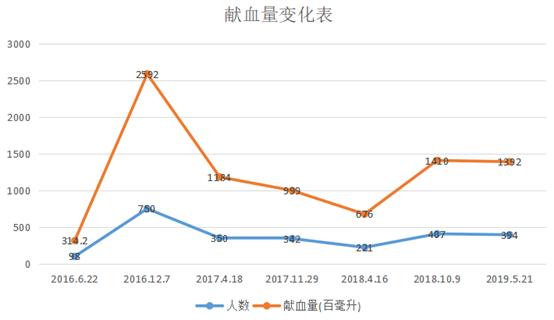 小编整理了近年来齐鲁师范学院献血人数及献血量的变化,绘制成了折线图,可以看出近年来,我校同学们的献血热情逐年高涨,积极的为献血活动贡献出了自己的绵薄之力。