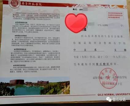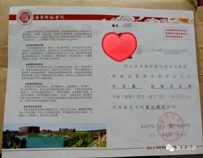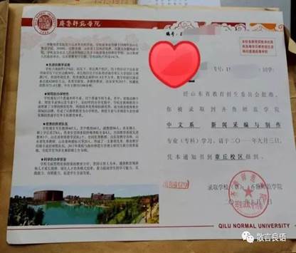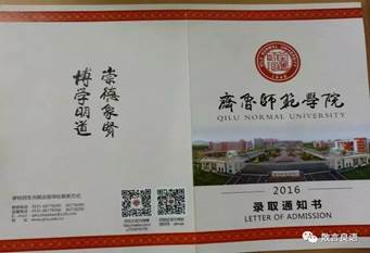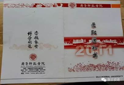 2011年,这时候的通知书简洁大方,左面是学校校训,右面是章丘校区北门口的“证件照”。2011年的时候文学院还有一些其他的专业,随着不断改革,小编也只能通过图片的形式了解他们了,蛮有年代感哟。