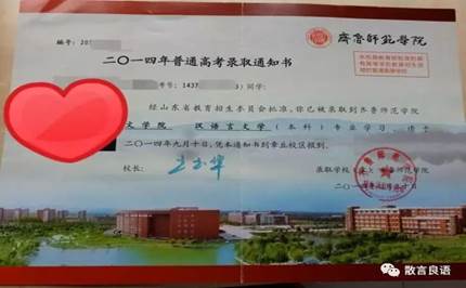 这一张漂亮的纸是开启大学新生活的钥匙,多年辛苦付出终得如愿以偿。