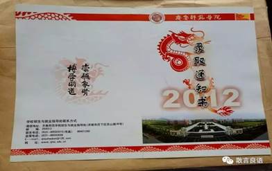 2015年一改简洁大方,红红火火的通知书真是喜气洋洋,反面的图书馆与文脉湖相依相偎,也是学校的一大标志。