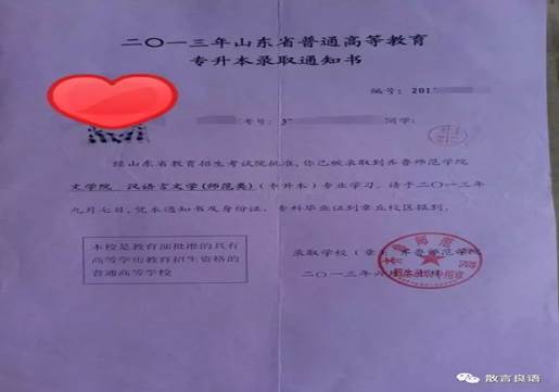 2013年,因未找到清晰大图,放一张专升本专业的录取通知书,虽然没有了鲜艳的颜色,但白纸黑字仍然是对努力的肯定。