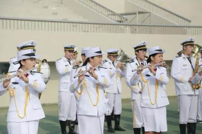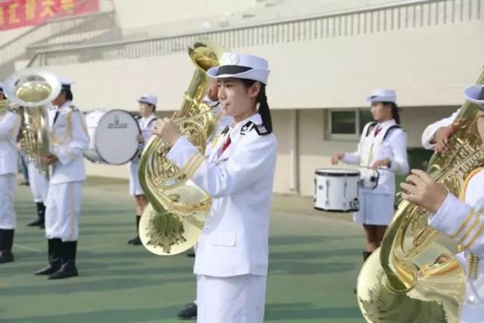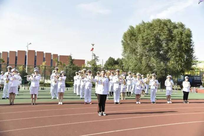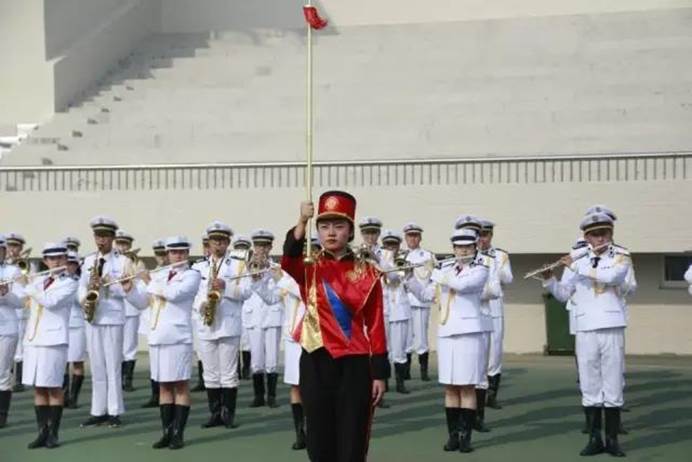 指挥演奏的同学告诉我们,在刚开始训练的时候,很多同学连手中的乐谱都看不懂。从军乐队选拔开始,老师们就对大家寄予了期冀,教学过程中,老师们针对性地讲解音乐知识,日夜陪伴着大家排练,一个动作做了无数遍,一首曲子又练了无数遍,大家相互配合,努力协作