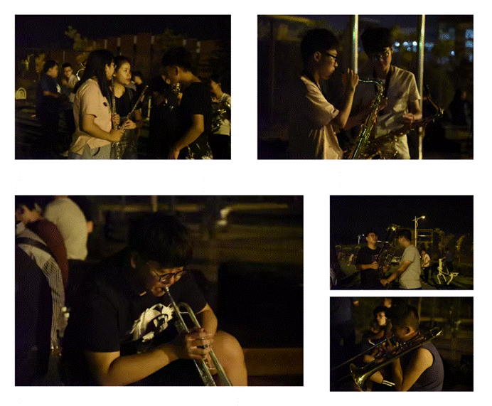 灿星高高地挂在夜空,晚风习习地掠过绿茵场,为了军训演奏、迎新晚会以及各项活动,他们还在不断努力着,为了完美的演出而奋斗着!