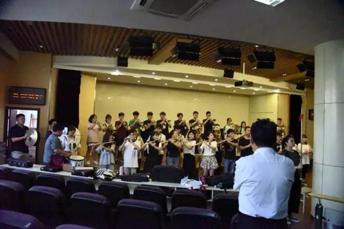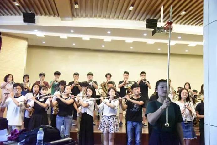 军乐团简介:寻找一个契机来相遇——成立于今年的齐鲁师院军乐队由音乐学院、教师教育学院,物理与电子工程学院,信息科学与工程学院,外国语学院,体育学院,经济与管理学院,数学学院等八个学院共计53名同学组成。军乐队成立伊始,各学院的同学们积极报名参加,最终经过层层选拔,成立了长笛、单簧管、萨克斯等多个乐队组合,并且在老师们的精心指导下,逐渐打造了一个凝聚我院特色、展现大学生青春活力的优秀军乐队。