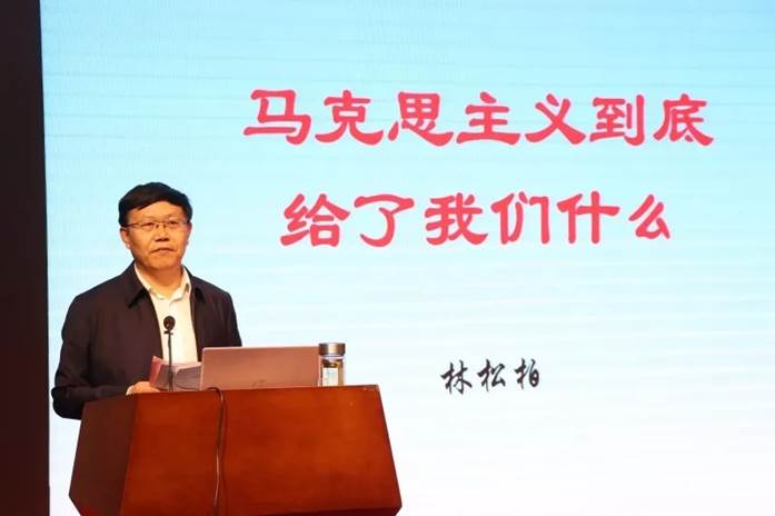 林松柏校长就马克思主义给了我们的价值尺度、发展的目标、发展的理论、发展的方法和举世瞩目的发展成就五个方面诠释“马克思主义到底给了我们什么”主题。