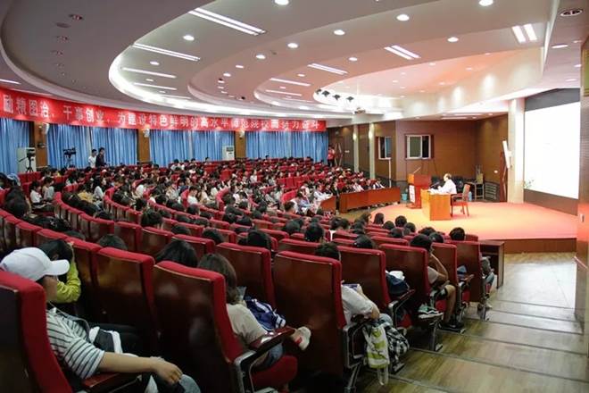 韩延明教授结合我校校训“博学明道,崇德象贤”,告诫青年学子要向远方的真理前进,并以校训的出处“博学足以明道,前虽不至,其更以博士征之。”