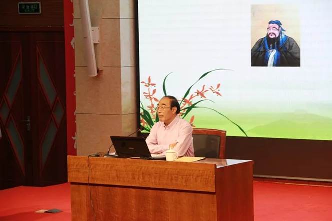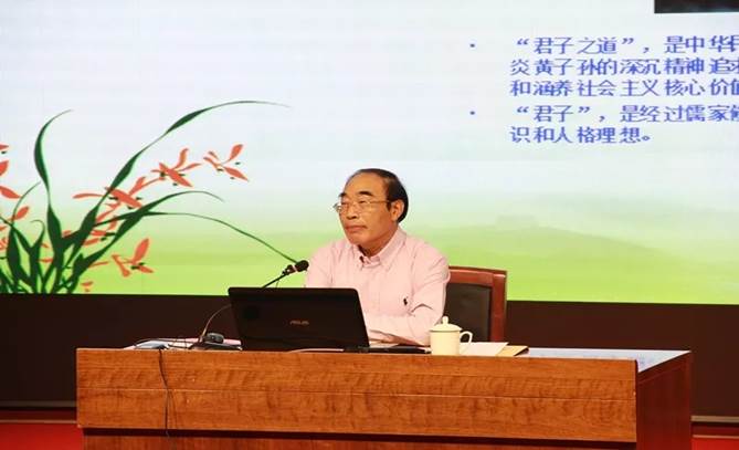 讲座开始之前,韩延明教授向大家介绍了本次讲座的主题——君子之道:诚心做人与精心做事。他引用孔子“君子务本,本立而道生”和“做君子,不做小人”的言论阐释了讲座的目的和主旨。