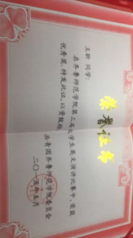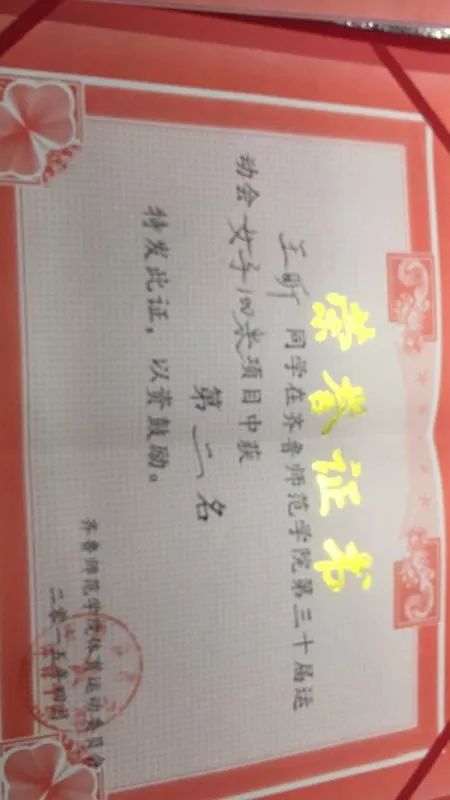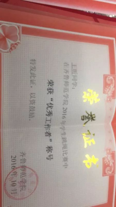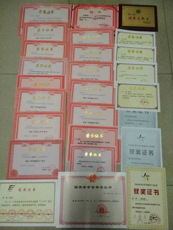 连续三年荣获校级奖学金,大三暑假期间代表学校参加山东省首届健身气功并荣获“五禽戏”一等奖、“八段锦”二等奖,大学生三下乡·千村行中荣获“山东省大中专优秀志愿者”。