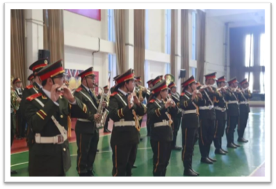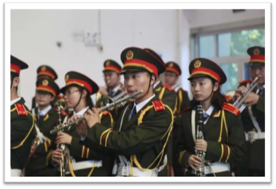 军乐队身着军装,彰显青春的骄傲,手中的乐器将激昂的国歌奏响,那
