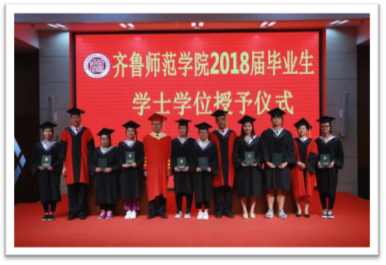 “你是我生命的阳光,你是我理想的殿堂,学海求新知,矢志成栋梁……”伴着齐鲁师范学院校歌的优美旋律,毕业典礼结束后在章丘校区学术报告厅举行了学士学位授予仪式。