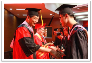 毕业生们身穿学士服,齐戴四方帽,踏着自信的脚步,登上学位授予舞台。学校学位评定委员会主任委员、校长林松柏教授,副主任委员、副校长刘德增教授,副主任委员、副校长张福建教授及各学院学位评定分委员会主任委员为每位获得学士学位的学生拨穗正冠、颁发证书、合影留念。毕业生们鞠躬、握手、接过证书、合影、转身、道别、离开……多年苦读,一瞬间的结点;无尽不舍,一辈子的珍藏。学位授予仪式为所有师院在努力奋斗、学有所成的学子们“加冕”。