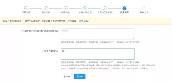 第六步:填写奖惩情况