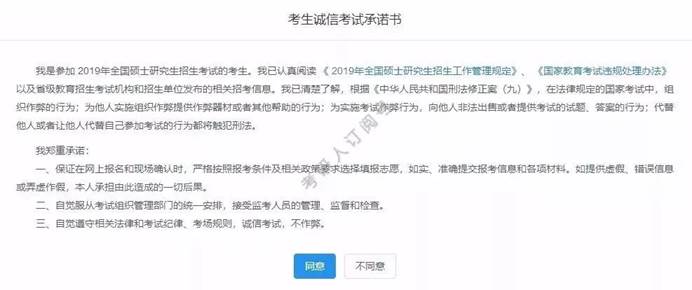 三、 第一步:阅读考生诚信承诺书,点击同意