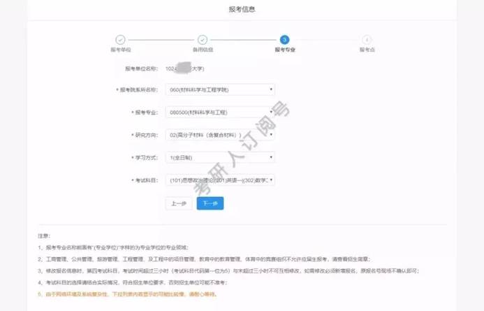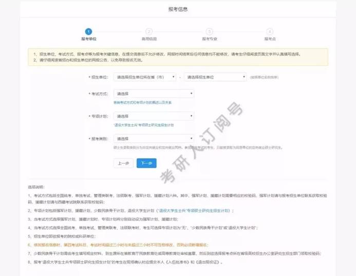 请不要开启有网页拦截功能的软件;招生单位、考试方式、报考点等要慎重选择,一旦生成报名号后则不可以修改;如确实需要修改,须取消已有的报名再添加新的报考信息,已取消的报名信息不可用于现场确认;