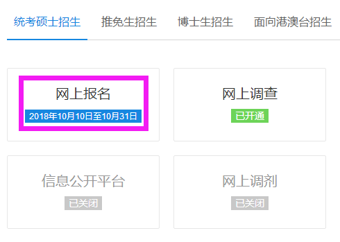 登录中国研究生招生信息网,点击网上报名