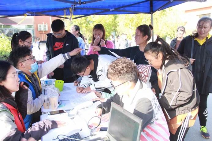 在献血期间,献血者们首先要接受志愿者们的简单问询并填写个人信息单及报名表,而后进行血压的测量、化验血型等基本检测,献血过程中志愿者们配合工作人员工作,耐心解答同学们的问题积极地为同学们的缓解紧张。献血结束后由志愿者们为献血者打印献血证并配发礼品。