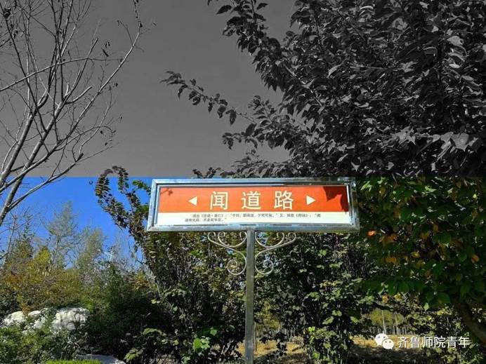 水墨与彩色交融,“闻道路”的路牌注满了与校龄等长的年岁。