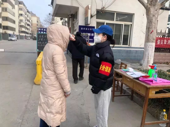 一家十四口人,八名党员,连续十三天坚守岗位,下乡镇巡查,在县城各个小区挨家挨户走访,疫情严峻时刻,把人民群众的生命健康放在第一位,这种大无畏、无私精神使我敬佩。我便同父亲一起,决定为社会做点什么。于是我的工作就是对小区进出人员进行体温测量和信息登记。如有发现未戴口罩者立马严肃制止出行,进行警告。二十四小时轮班值守不能出现无人守门的情况。