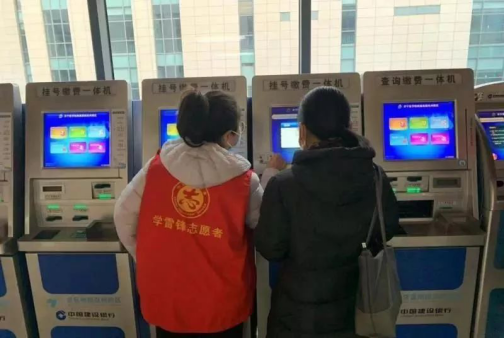 周建婕,共青团员,就读于我校化学与化工学院2019级环境监测与控制技术二班。她前往济宁市兖州区人民医院成为了一名志愿者,主要帮助患者使用一体机自助挂号、指引医院具体路线、宣传健康保健知识。