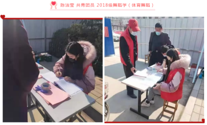“抗击新型冠状病毒肺炎疫情本身也是一项内容复杂、责任沉重的健康教育。作为体育教育专业大学生,不该仅当旁观者,理应献出我的光和热,与社区党员群众并肩迎战,让自己通过社会这个大课堂学到更多更鲜活的知识与技能。”