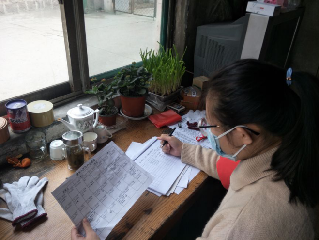 志愿工作当中,首先进行入户摸排调查,排查近期有无与疫情地区人员接触情况,有无发热症状等。由于老村基本都是外来租房人员,所以排查起来比较困难。有的居民拒绝配合,明明在家却不开门;有的家庭经济困难,消息闭塞,根本不清楚本次疫情信息。在寒风中,一站就是一天。面对不理解和不配合,她一次次耐心解释、宣传、劝导、登记。