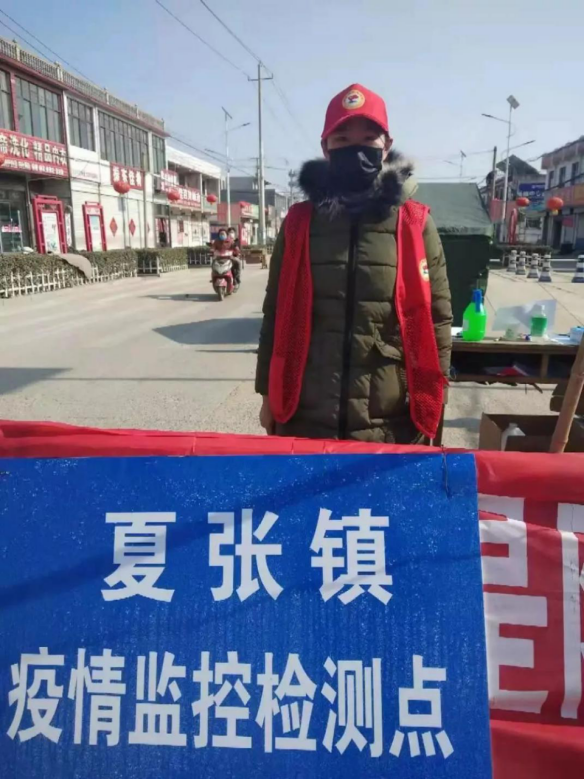 孙越,共青团员,就读于我校化学与化工学院2019级环境监测与控制技术二班。在大年初三上午,村委会成员给所有志愿者培训后,按照分配的任务,她来到了疫情监控监测点。在疫情监控监测点上,她与其他几名志愿者一同排查主干道路上的来往车辆、测量过往行人的体温、登记人员进出情况。