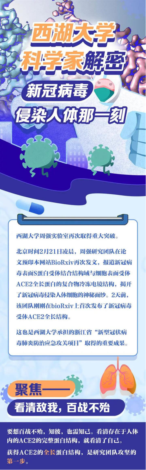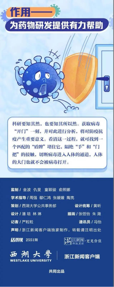 但也要清醒的认识到,由于疫苗研发的周期比较长,我们必须尊重科学规律,经过科学、严谨、安全的研究过程,另外,浙江省基础研究领域重大突破,西湖大学,浙江省生物实验室,利用冷冻电镜技术,成功解决了新冠病毒受体。
