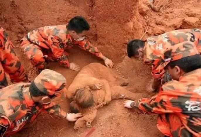 ▲2008年5月13日,北川县城,一名父亲经过10小时挖掘,救出了自己的女儿。