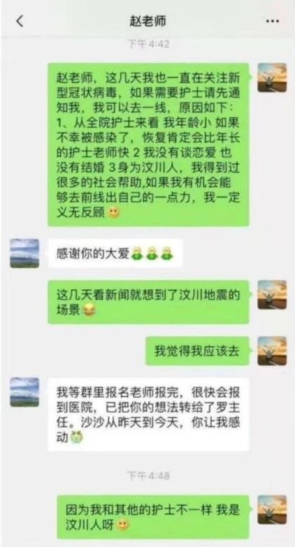 ▲这是四川省第四人民医院内科四病区护士佘沙两次请战出征武汉的理由。