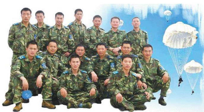 ▲图为12年前“空降十五勇士”从震区归来后在机场的合影:从左往右、从后到前依次为——刘文辉、李玉山、王磊、赵海东、刘志保、雷志胜、殷远、赵四方、王君伟、任涛、李振波、于亚宾、郭龙帅、李亚军、向海波。