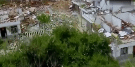 ▲2008年5月15日,北川县城,一位医护人员站在废墟顶部望着整个县城。