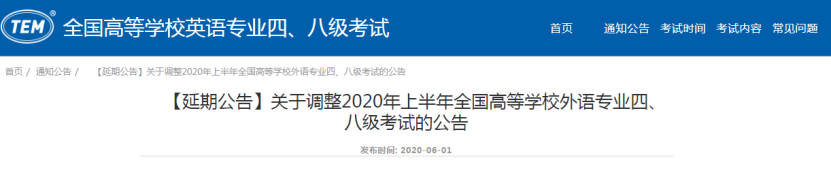 7. 原定于2020年6月21日举行的全国高等学校日语专业四级考试。