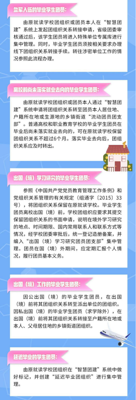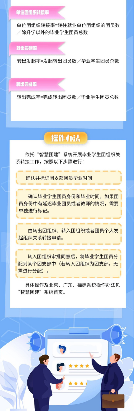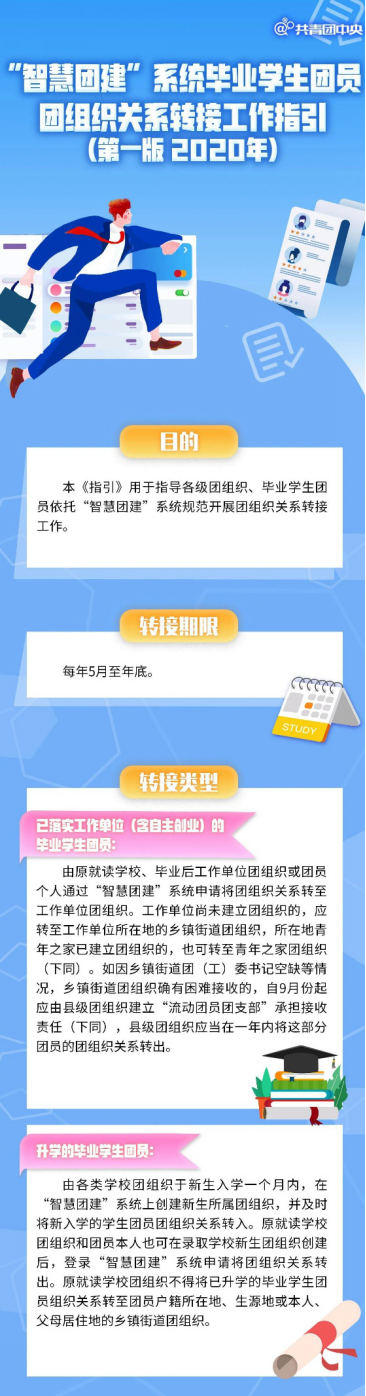 为便于同学们转接团员组织关系,全团依托“智慧团建”系统开展毕业学生团员组织关系转接工作,请同学们按照工作指引,根据自身实际情况,主动规范地转接好团组织关系。