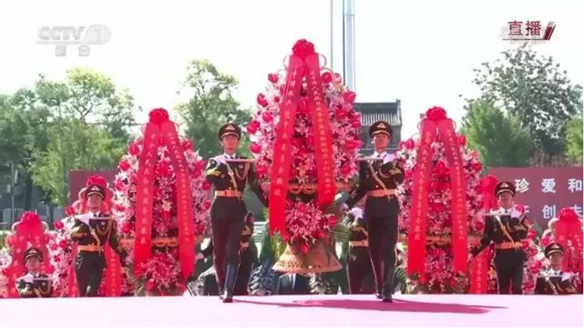 纪念中国人民抗日战争暨世界反法西斯战争胜利75周年向抗战烈士敬献花篮仪式3日上午举行。习近平等党和国家领导人出席。