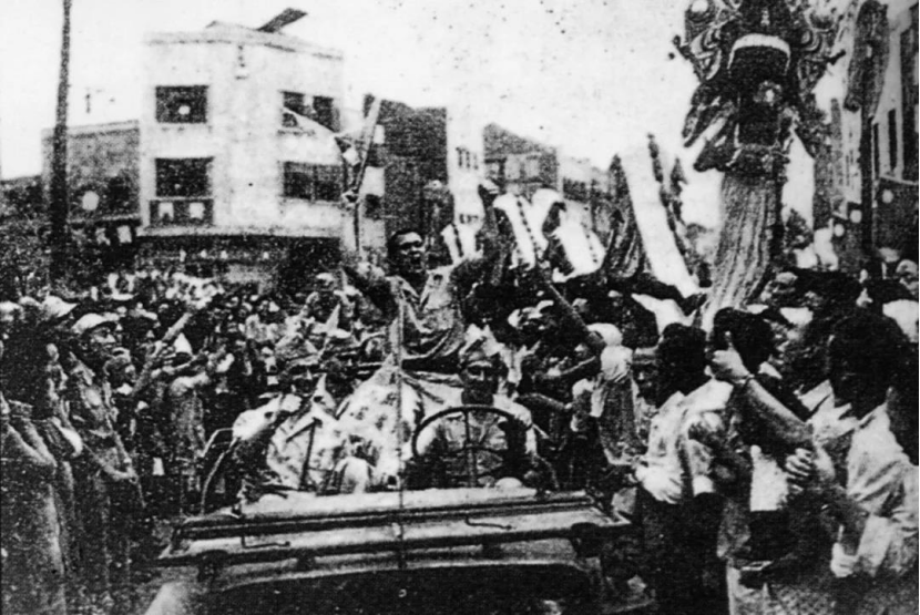 重庆庆祝抗战胜利的游行队伍。(资料图片)新华社发