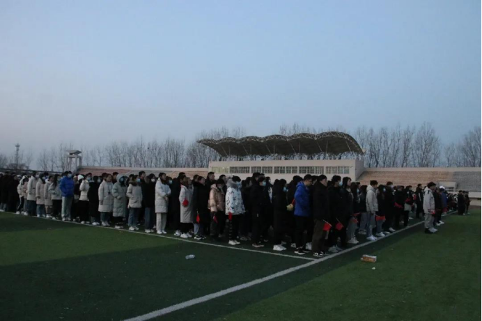 为缅怀南京大屠杀30万遇难同胞,在校团委的发起下,12月13日6点国旗护卫队、校学生会、校记者站、校青协、校广播站、校社联及各个学院团干代表、社团负责人代表,共计600余人齐聚操场上,沉痛缅怀在大屠杀中死难的同胞,祈愿和平。