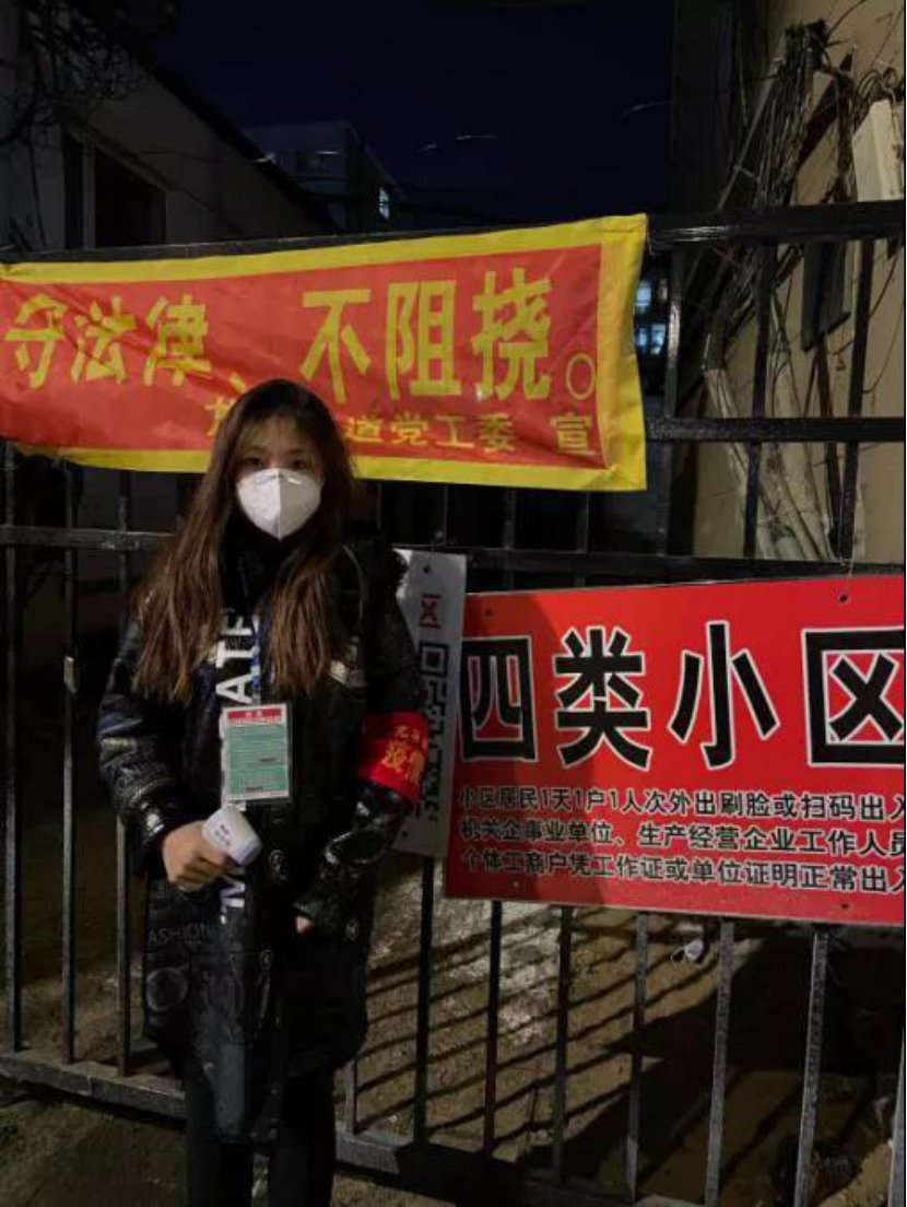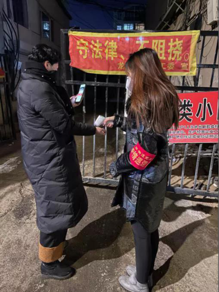 在疫情防控的关键时期,我主动请缨,加入到所在社区疫情防控志愿者队伍中。在服务期间,与老党员们每天日夜奋力坚守在疫情防控第一线,积极配合他们做好疫情防控工作,积极为社区居民进行防疫知识普及和个人健康排查;对辖区出入车辆、人员进行检测登记和测温,针对外来人员她履行好各项登记制度;并配合居委会每日进行巡逻检查是否有外地车辆进入,劝阻不必要的外出并引导居民正确佩戴口罩,养成良好习惯,努力强化群众防范意识。虽然是在夜间上岗,但面对寒冷的天气,我丝毫不懈怠,仔细核对,认真应对。