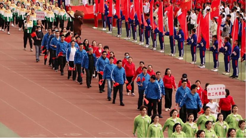 4月29日上午,伴随着激昂奋进的《运动员进行曲》节奏,国旗护卫队、红旗队、裁判员代表队、各学院运动员代表队及教职工代表队带着灿烂的笑容,迈着整齐矫健的步伐,精神抖擞地向我们走来。